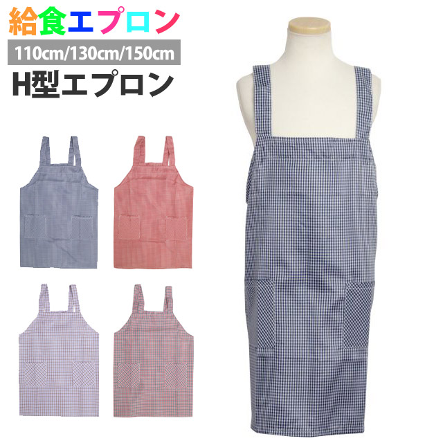 エプロン H型 子供用 キッズ 男の子 ギンガムチェック柄 学校 給食 エプロン 子供エプロン キッズエプロン 110cm130cm150cm