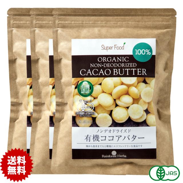 有機カカオバター 300g 3袋 ココアバター ペルー産有機JASオーガニック カカオバター100% 未脱臭 化学溶剤不使用 香料不使用 無添加