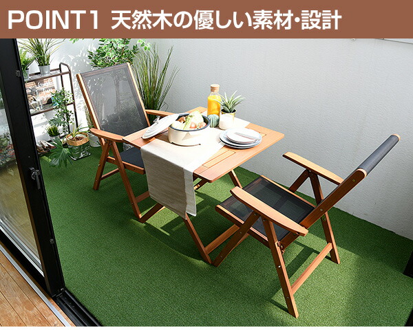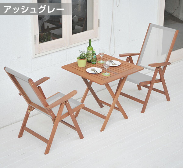 | 商品説明 | ●ガーデン用テーブル1卓とチェア2脚の3点セット ●雨に強い天然木マランティ材を採用 ●チェアの座部は通気性の良いメッシュ生地を採用 座り心地、手触りが抜群です ●組立不要の完成品なので届いてすぐに設置可能です ●チェア背部は7段階にリクライニング可能 ●パラソルホール:直径4cm ●テーブル、チェアどちらも折りたたみ可能 テーブル折りたたみサイズ:幅75 奥行100 高さ12cm チェア折りたたみサイズ:幅62 奥行14 高さ90cm ※2019年10月31日より「ブルー」色は廃盤となりました ※2024年5月1日より「アッシュグレー」色が追加となりました ※2024年9月1日より「グレー色」は廃盤となりました |