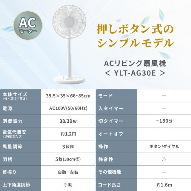 扇風機 左右首振り リビング扇風機 風量3段階 押しボタン 切りタイマー 静音 省エネ YLT-AG30E 30cm羽根 首ふり リビングファン サーキュレーター おしゃれ シンプル 換気 熱中症対策 山善 YAMAZEN 【送料無料】
