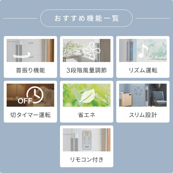 | 山善 YAMAZEN 扇風機 スリムファン タワーファン 左右首振り リモコン式 切タイマー 静音 YSR-X781(WH) |