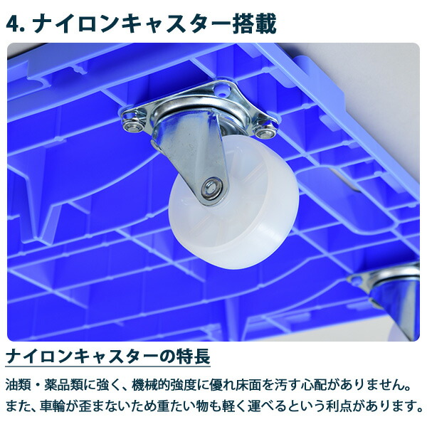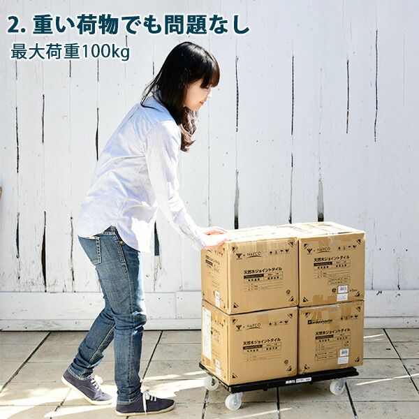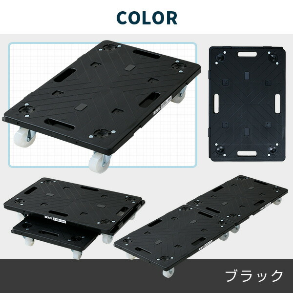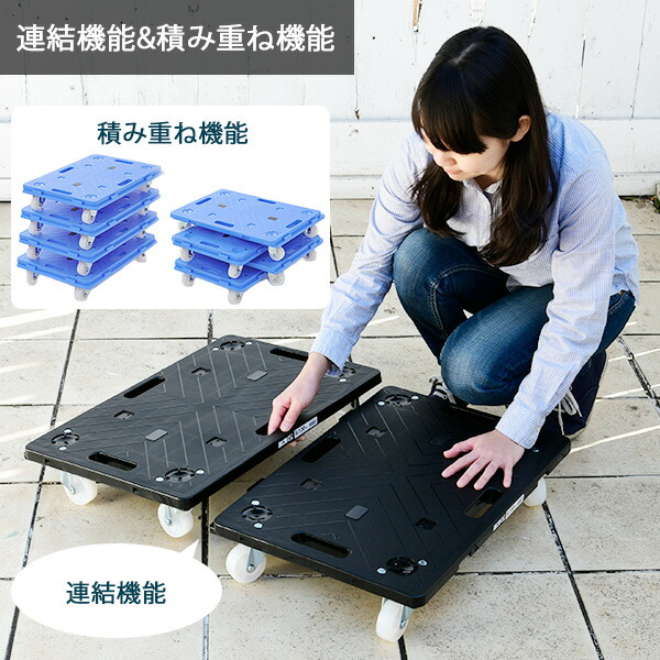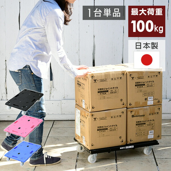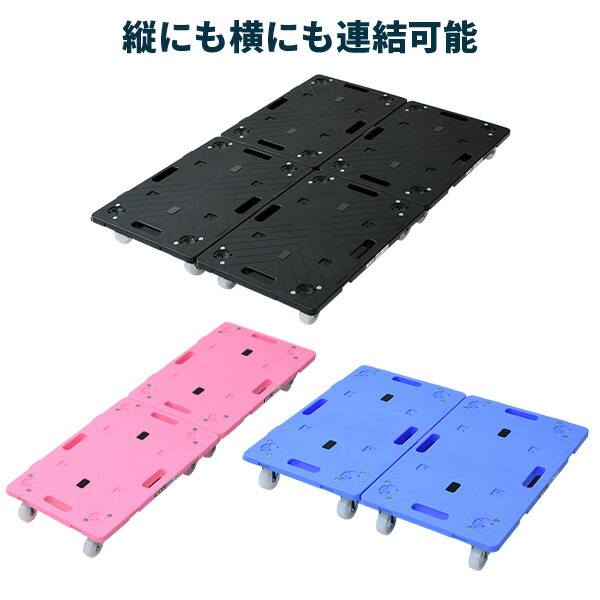| 商品説明 | カラーは3色(ブラック、ブルー、ピンク)よりお選びください ●家庭用としても業務用としても使いやすい、連結機能と積重ね機能を備えた平台車 ●すべり防止ゴム付(2カ所) ●許容積載重量 : 100kg ●キャスター直径65mm ●ナイロンキャスター:油類・薬品類に強く、機械的強度に優れ床面を汚す心配がありません また、車輪が歪まないため重たいものも軽く運べるという利点があります 2020年3月23日販売分よりブラック色が追加になりました | |||