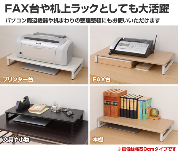 | 商品説明 | ●キーボードやマウスを収納してデスク上を有効活用できるモニタースタンド ●コンセント付きで電源確保がストレスフリー ●FAXやプリンター台としても便利 ●背面に板などの障害が無いのでケーブル類の配線がスッキリ ●有効内寸:幅54 奥行23 高さ6cm ●耐荷重:約15kg |