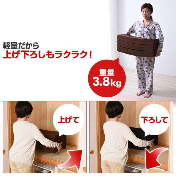 - ごろ寝サイズで収納しやすいマットレスを探していたので正に理想的な商品でした。色ちがいで母にも購入しました。
