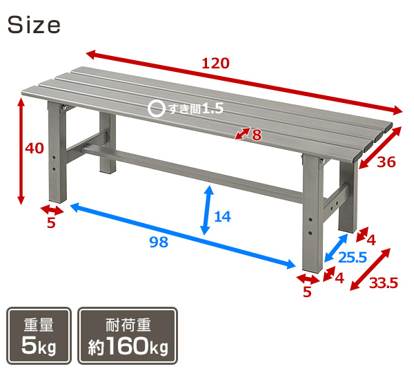 | 商品説明 | ●ベーシックデザインのアルミ縁台 ●マンションのベランダ等に最適 ●アルミ製なので軽くて丈夫でさびにくく耐久性に優れています ●アルミ製だからお手入れも簡単 ●耐荷重:約160kg |