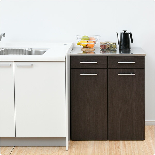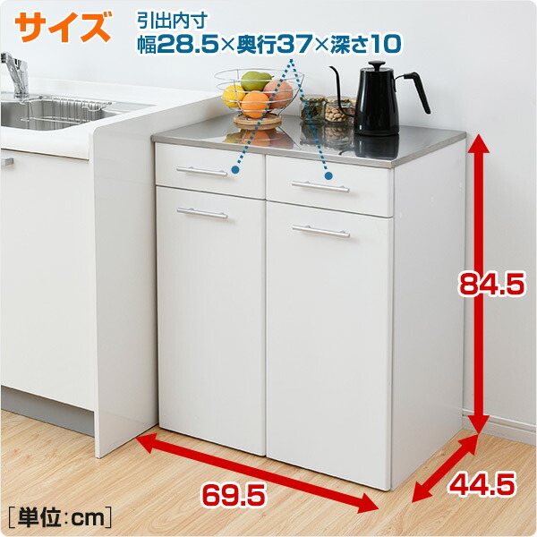 | 材質 | 天板:ステンレス 本体:プリント紙化粧繊維板 前板:繊維版(ラッカー塗装) ダストボックス:ポリプロピレン |