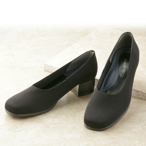 日本製 足が楽な布製フォーマルパンプス (22.5cm/23.0cm/23.5cm/24.0cm/24.5cm) パンプス レディース 4E 22.5 23.0 23.5 24.0 24.5 弔事 葬儀 黒 ブラック リクルート フォーマル 痛くない ローヒール メイダイ 【送料無料】