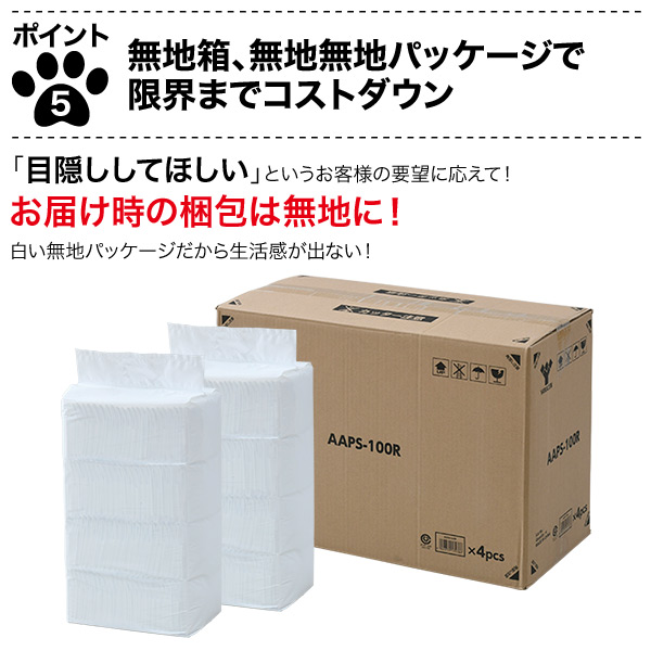 | 商品説明 | ●シーツの端までしっかり吸収 ●厚型だからこまめに交換の必要がなく留守でも安心 ●ひっかき対策に特殊エンボス加工 ●5回分のおしっこをしっかり吸収(小型犬1回約30ccとして) 【レギュラーサイズ】 ・1パック100枚入り×4パック (400枚) 【ワイドサイズ】 ・1パック50枚入り×4パック (200枚) |