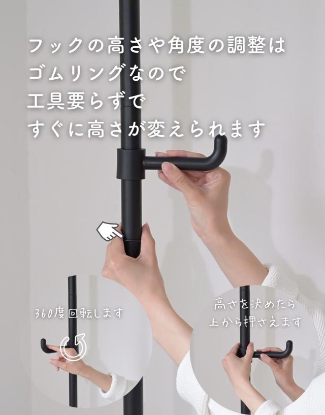 | 商品説明 | ※2025年1月30日より、グレージュ(ツヤなし)が追加されました。 ※2019年1月7日より、カラーバリエーションが増えました。つやのないマットなタイプが仲間入り。 【取り付け時の注意事項】 ※柔らかい床面や強度の弱い天井へは設置ができません。 ※勾配天井は対応できません。 ●ワンタッチ固定装置で簡単取り付けできる、突っ張りハンガーラック ●設置は工具不要でラクラク ●天井までしっかりつっぱりでき、スプリング圧縮式で安定性バツグン ●省スペースで設置できるから玄関やクローゼットにぴったり ●最大高さ280cmまで設置可能 ●フックの位置もお好みで調整可能 ●シャツ収納目安: 30着 ●全体耐荷重: 30kg ●フック1個あたりの耐荷重: 5kg ●実用新案取得のワンタッチ突っ張り構造 ●設置天井高さ: 200-280、140-188cm ※188-200cmの天井には設置できません。 支柱の一部が2本のパイプを連結する仕様です。 上部ポールを連結する/しないの間で生じる、設置ができないすきまゾーンがございますので以下の高さに設置可能です ■連結する場合(通常の使用方法) 高さ: 200-280cm ■連結しない場合(部品を一部使わず短く設置)高さ: 140-188cm その為、188-200cmの高さでは設置ができない作りとなっております。 |