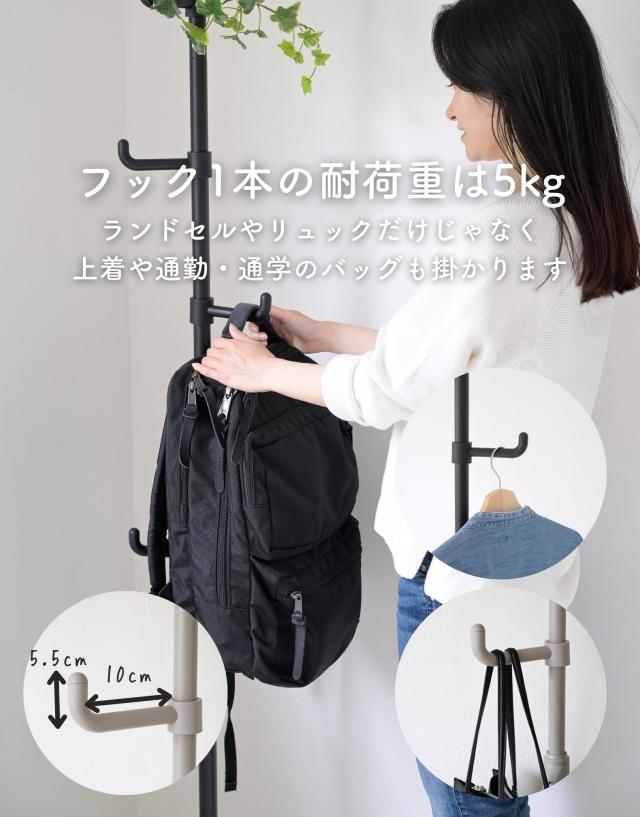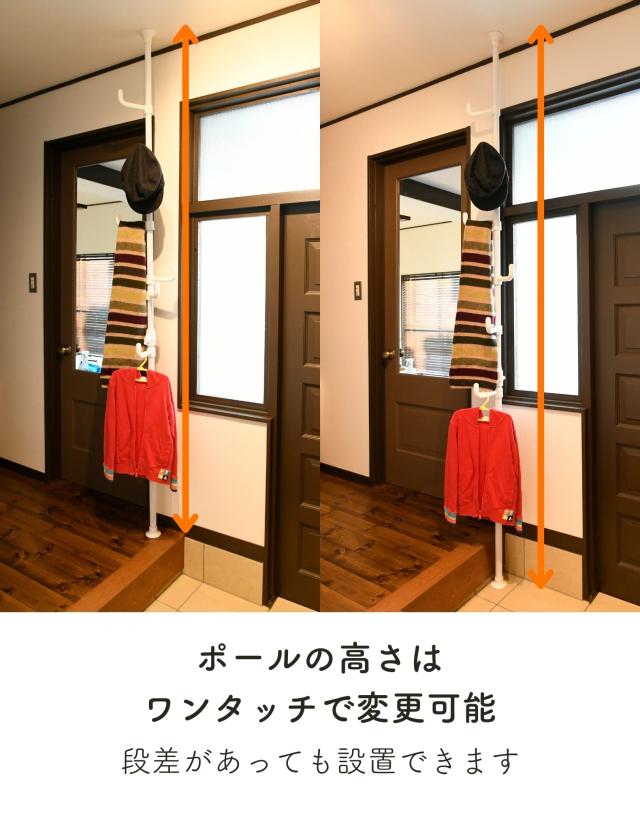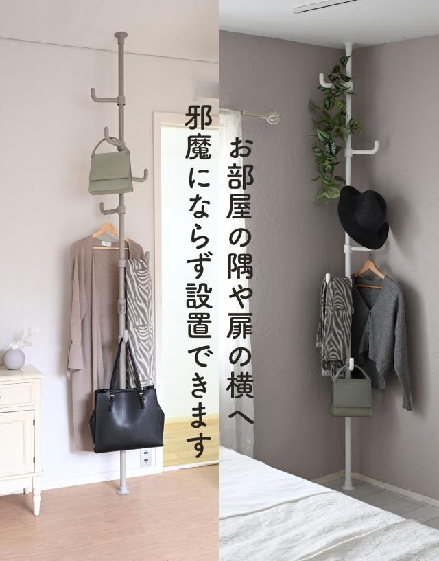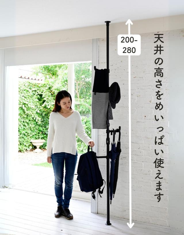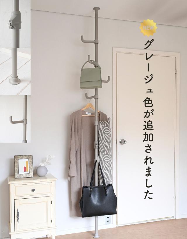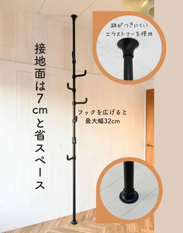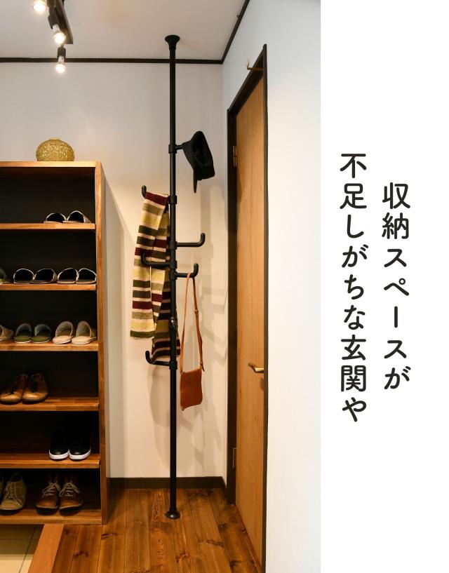 - ずっと玄関用の上着等をかける物を探していて、やっと理想の物が見つかりました。シンプルでコンパクト、つっぱりタイプで倒れる心配もなくとても良いです。