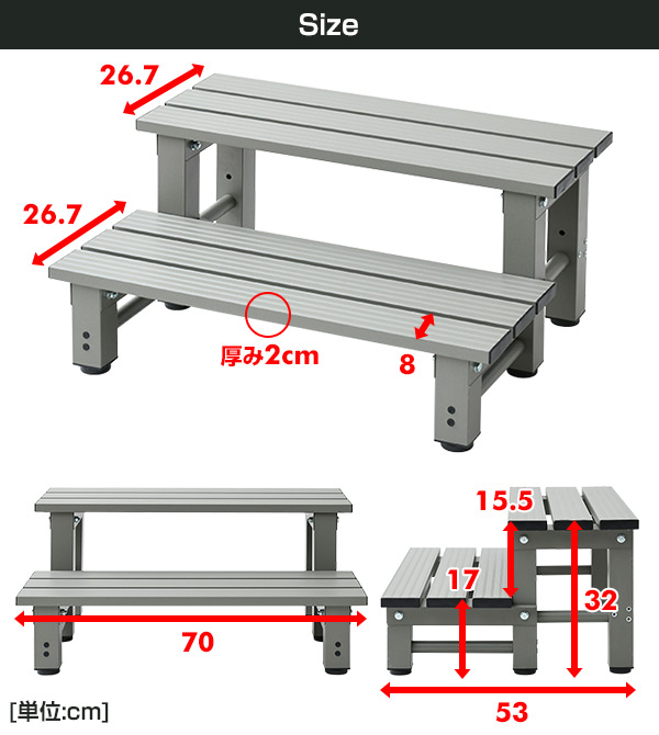 アルミステップ台 アルミ踏み台 (幅70奥行53) YM-700 2 段差解消 アルミ製縁台 ベンチ 踏み台 花台 プランターラック 山善 YAMAZEN ガーデンマスター 【送料無料】