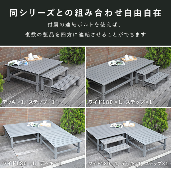 | 商品説明 | ●カラーは2色(グレー、ダークブラウン)よりお選びいただけます ●ベランダ、縁台、玄関等の段差を解消できるステップ ●シーンに応じて組み合わせ可能 ●付属の連結ボルトを使えば、複数の製品を四方に連結させることができます また、同シリーズの、DX縁台180(DXB-180)、DX縁台90(DXB-90)も同様に連結させることができます ●プランタースタンドとしても最適 ●アルミ製なので軽くて丈夫 ●雨風に強く、さびにくく耐久性に優れています ●アルミ製だからお手入れも簡単 ●ステップ部内寸高さ:(前)14(後)30cm ※2021年7月2日よりモスグリーン色が廃盤になりました |