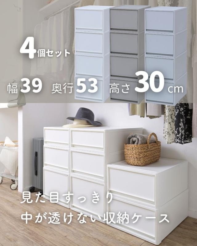4個組 L 中が透けない 収納ケース 引き出し 奥行き53 収納ボックス 幅39 奥行53 高さ30 cm 衣装ケース 押入れ収納 押入れ クローゼット収納 クローゼット WIC ポリプロピレン プラスチック 日本製 【送料無料】
