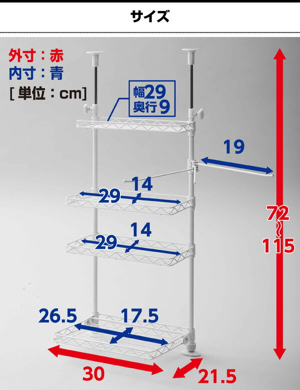| 材質 | 本体:スチール 塗装(粉体塗装、下地:カチオン電着塗装) 突っ張りポール部:スチール(クロムめっき) |