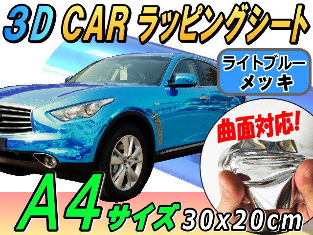 メッキ ラッピングシート (A4) ライトブルー 幅30cm×20cm A4サイズ カーボディ クローム 鏡面ステッカー ミラー調フィルム メッキシート メッキシール カーラッピング メタル調 ラッピングフィルム 車 トラック バイク グリル 外装 曲面対応 クロム加工