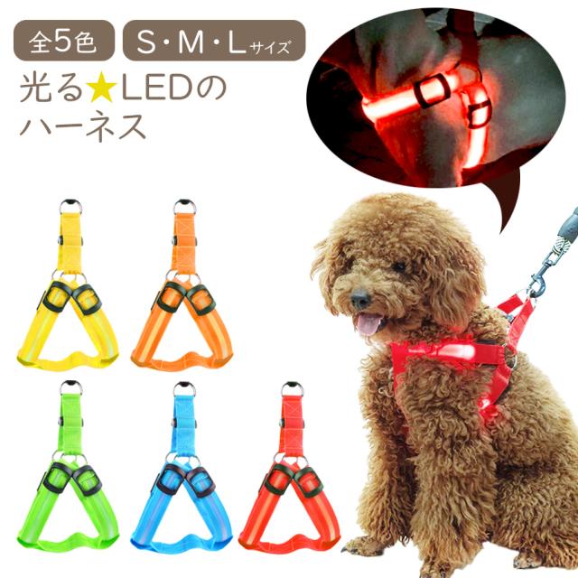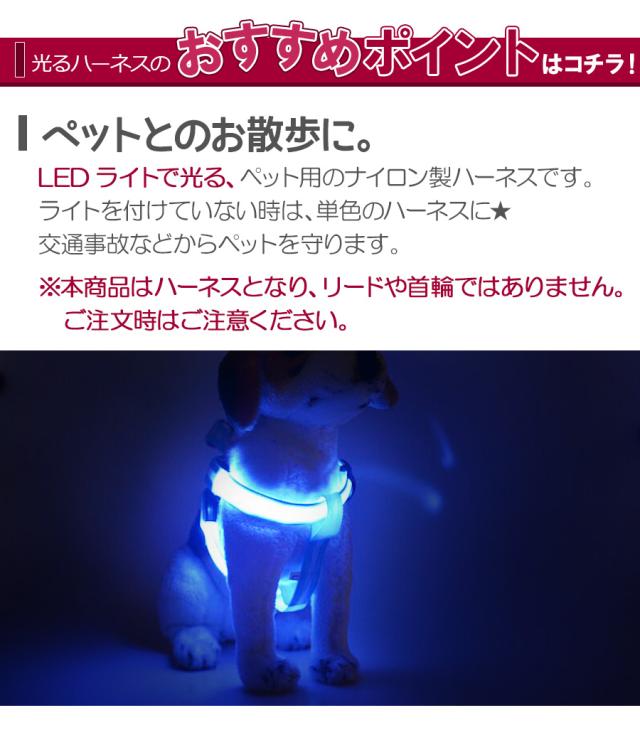 犬 ハーネス 胴輪 光る LED ペット 夜間 散歩 事故防止 安全 メール便送料無料 即納