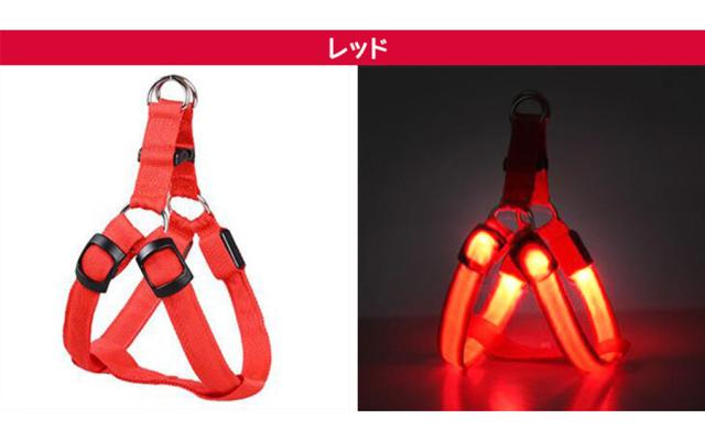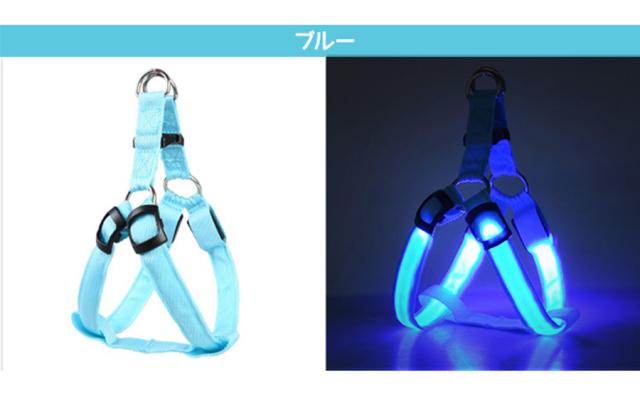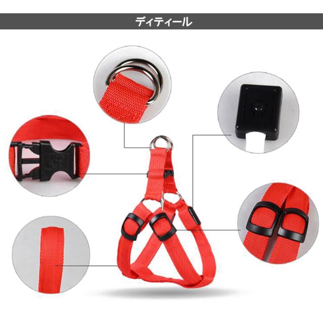 犬 ハーネス リード 胴輪 首輪 光る 光るハーネス LED S M L キラキラ光るバンド LEDライト 夜間 散歩 お出かけ 簡単装着 ウォーキング きらきらバンド 事故防止 交通安全 ペット用品 子犬 小型犬 中型犬