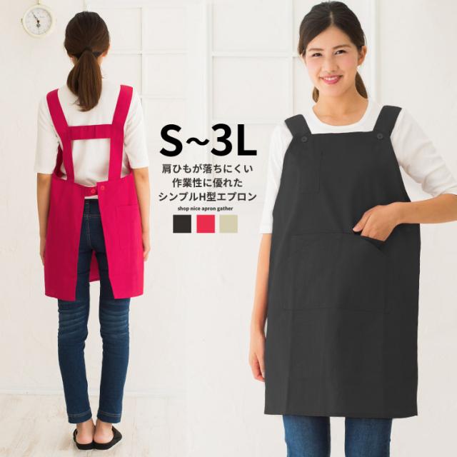 S,M,L,LL,3L 大きいサイズ ツイル生地 H型 エプロン 無地 男女兼用 ユニフォーム 制服 業務用 大きいサイズ 大きい