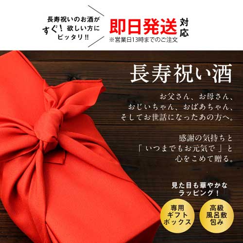 専用化粧箱に専用熨斗を巻き、その上から還暦のテーマカラーでもある赤色の風呂敷で素敵に梱包します。