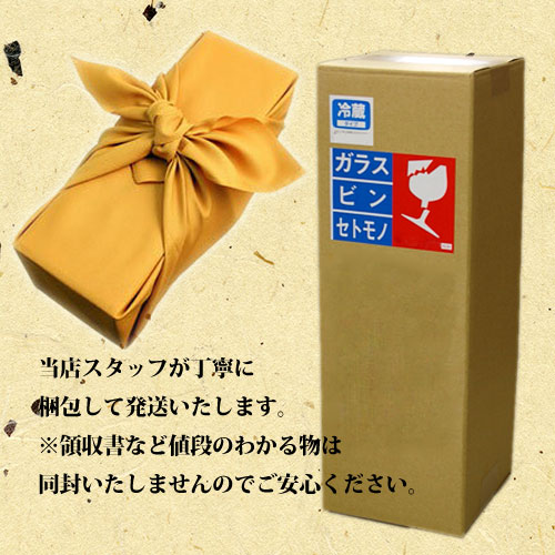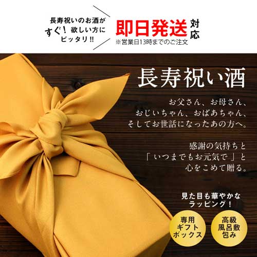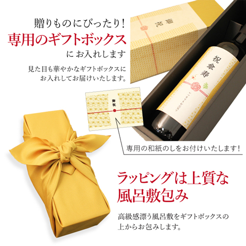 専用化粧箱に専用熨斗を巻き、その上から傘寿のテーマカラーでもある黄色の風呂敷で素敵に梱包します。