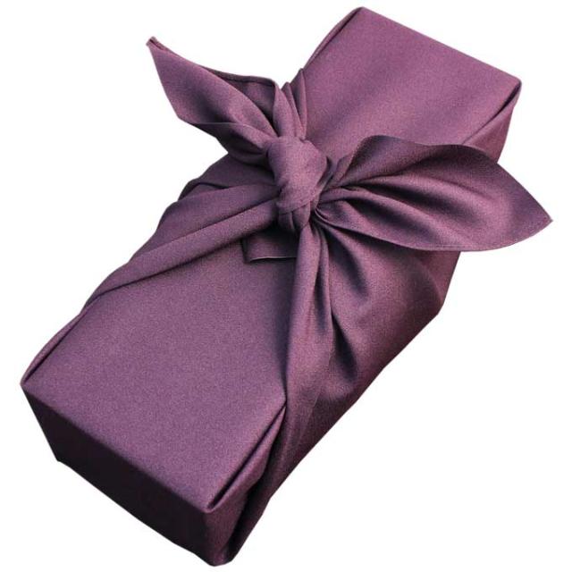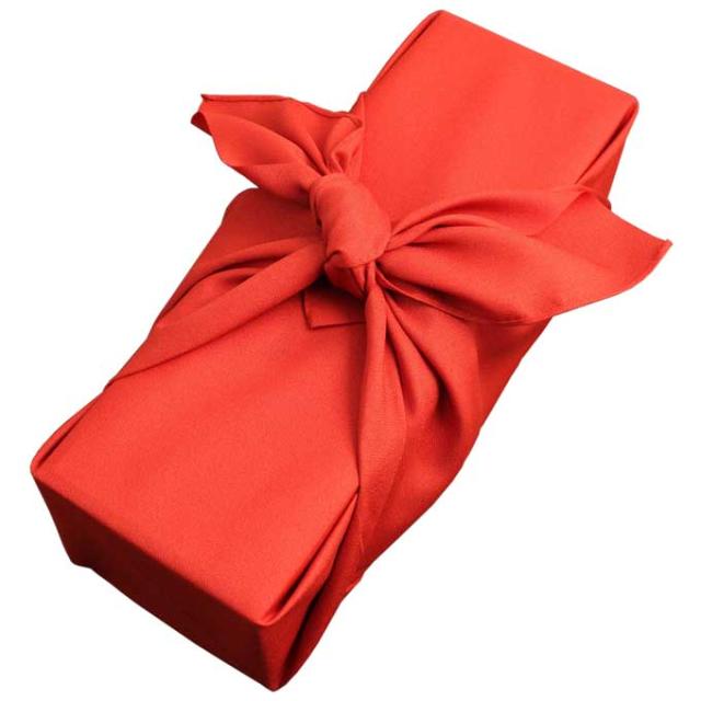 専用化粧箱に瓶と同じ色の風呂敷で素敵に梱包します。