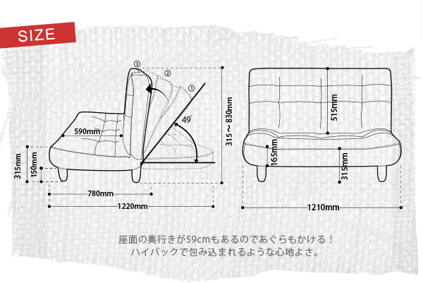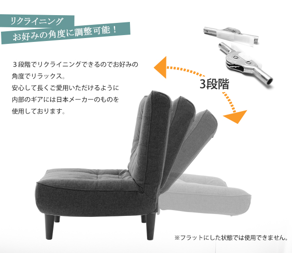【備考】背は3段階でリクライニングします。
