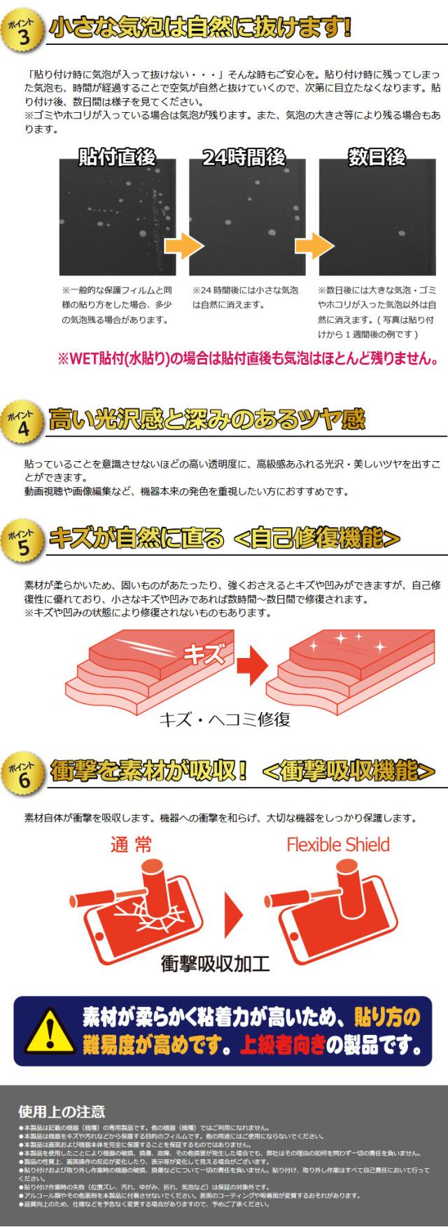 ●素材はTPU(熱可塑性ポリウレタン)を採用。一般的な保護フィルムでは貼りつかなかった曲面に対応し、機器の端までしっかりとカバーします。