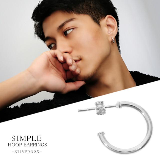 シンプル ハーフフープ シルバー ピアス 1P 片耳用 ベーシック シルバーピアス フープピアス リングピアス 甲丸 鏡面 リング 輪っか メンズ