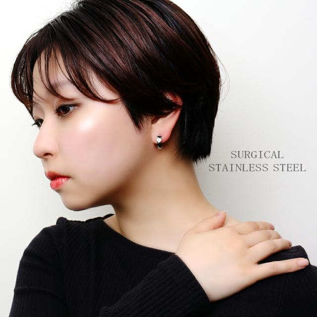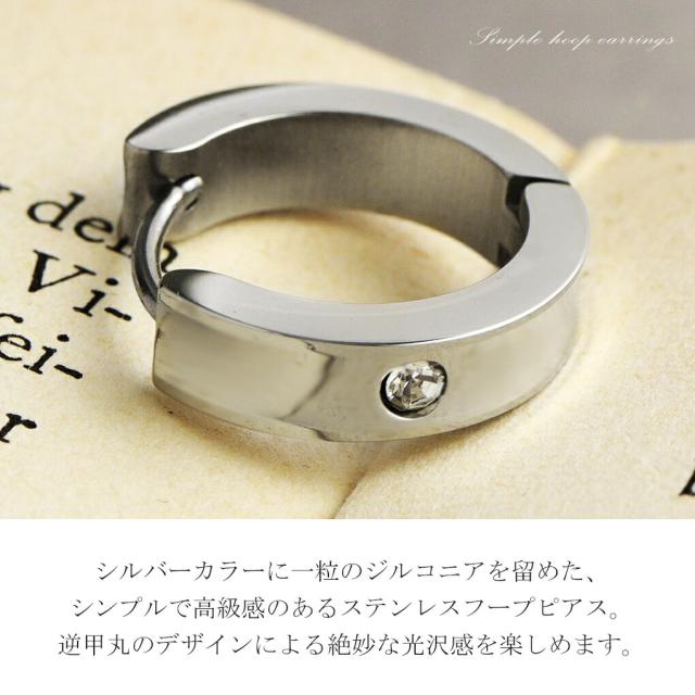 逆甲丸 ステンレス フープピアス ピアス 1P 片耳用 サージカルステンレス 金属アレルギーフリー シンプル ジルコニア リングピアス フープ メンズ