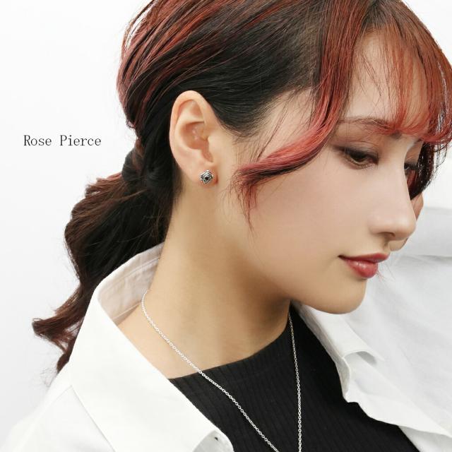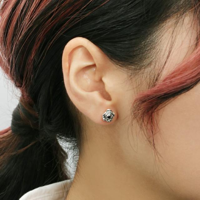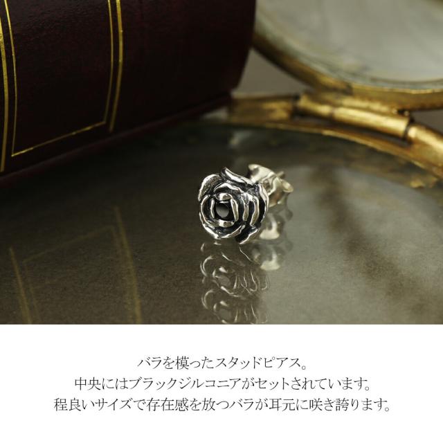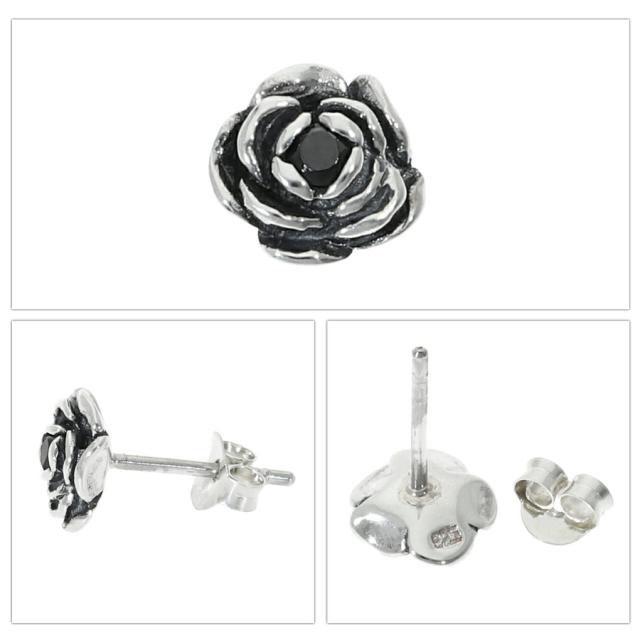 ローズ スタッズピアス ピアス 1P 片耳用 シルバー レディースピアス ブラックジルコニア ブラックCZ 薔薇 バラ 花 フラワー ジルコニア シルバー925