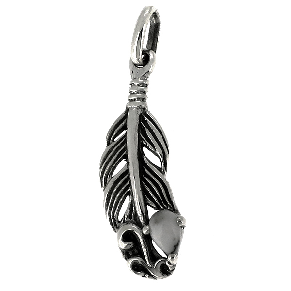 ハウライト フェザー ペンダントトップ (チェーン無) 羽根 ネイティブ 石 ネックレス ペンダント マグネサイト