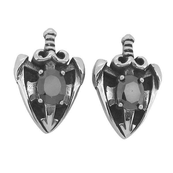 ソード スタッズピアス 2P 両耳用 ブラックCZ 剣 シールド 盾 ブラックジルコニア ピアス イヤリング