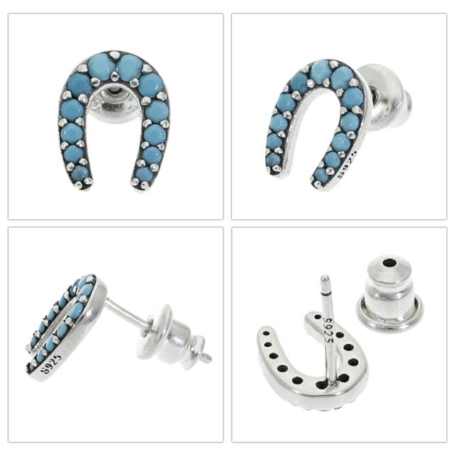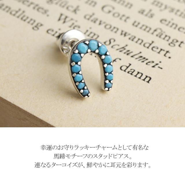 ホースシュー スタッズピアス 1P 片耳用 馬蹄 蹄鉄 ひづめ ターコイズ ピアス シルバー925 銀 シルバーアクセサリー アクセサリー カジュアル