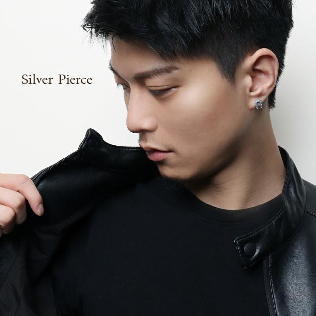 シルバーアクセサリー スターリングシルバー シルバーピアス メンズアクセサリー メンズピアス 男性用 スタッドピアス スタッズピアス 石付き ストーン ホースシュー 馬蹄 蹄鉄 スタッズ アクセサリー おしゃれ かっこいい 小さめ 小ぶり ブルー 青 水色