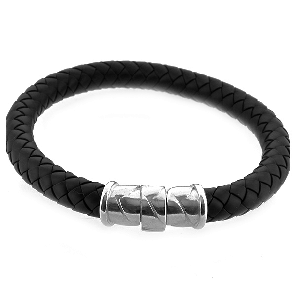 メッシュ 編みブレスレット 20cm 幅8mm ラバー 編み込み 茶色 ブレスレット バングル 腕輪 シルバー925 銀