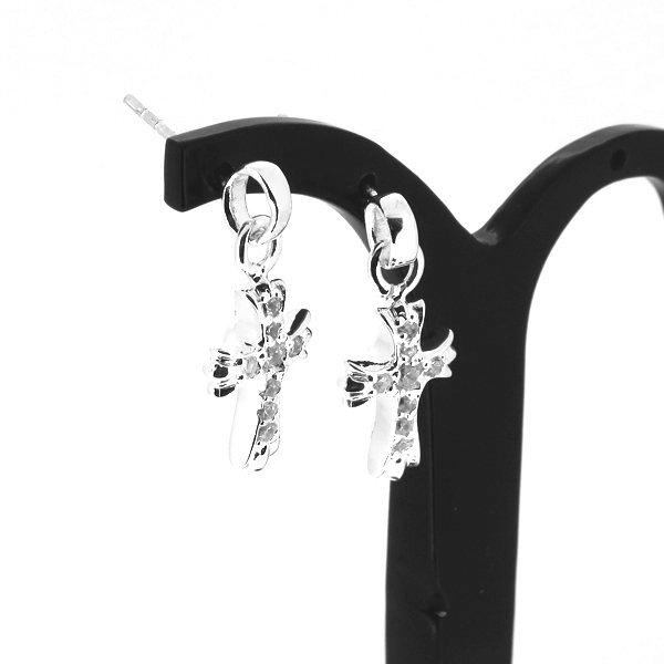 クロス ドロップピアス 2P 両耳用 ホワイトCZ ジルコニア パヴェ フレア ピアス イヤリング シルバー925 銀