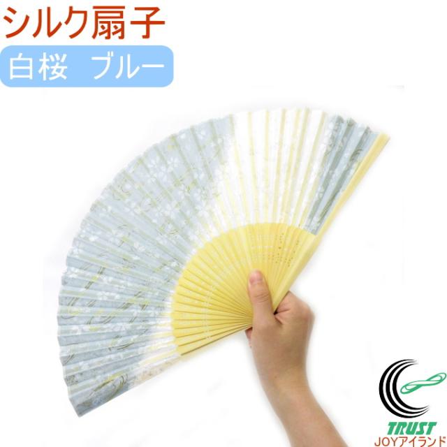 シルク扇子 白桜 ブルー 504-709 ネコポス対応 扇子 せんす シルク コンパクト 軽量 丈夫 和風 日本