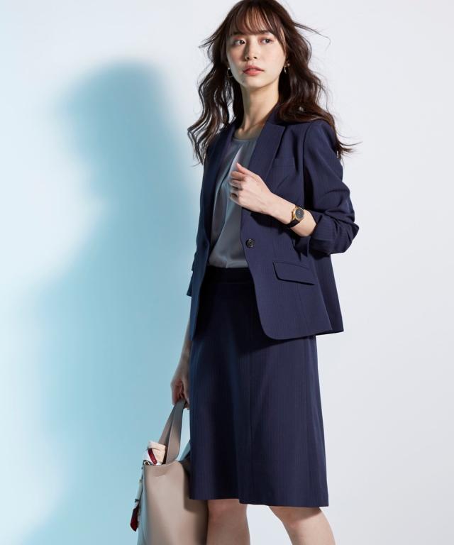 品質=[表地]ストライプ:ポリエステル95%・ポリウレタン3%・レーヨン2% 無地:ポリエステル95%・ポリウレタン5%(織物 2WAYストレッチツイル)[裏地]ポリエステル100%(織物 ストレッチ裏地使用)[裏地]ジャケット:有(背抜き) スカート:有(総裏)ジャケット:肩パッド有 ポケット前2・左胸・内 スカート:ウエスト後脇ゴム入 この商品は2点同サイズのみで販売します。<表地機能>タテヨコ2WAYストレッチ・吸汗速乾・接触冷感・防しわ・UVカット中国製 洗濯機OK ネット使用