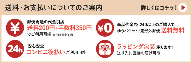 ※送料無料商品は、ゆうパケットもしくは定形外郵便での発送になります。ゆうパックご指定の場合は、送料550円となります。