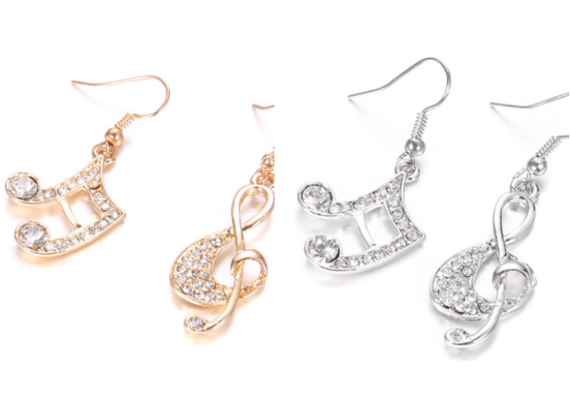 ペア 音符タイプ ピアス ★ レディース ジュエリー ラインストーン ピアス 可愛い イヤリング 両耳用オシャレ アクセサリー 金 銀 B08