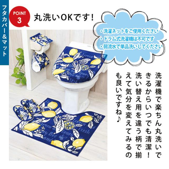 | 注意点 | ・トイレマット・カバー ※マットに飛び乗ったり、床面にが濡れていると滑る場合がありますので、ご注意下さい。 ※マットは床のお掃除に使う洗剤、ワックス、水等をよく拭きとり乾燥させてからご使用下さい。 ※マットはすべりにくい加工をしているため、長時間敷いたままでご使用されますと、床材(特に塩びフロア)が変色や密着等することがあります。時々床面を拭いたり、取り外す等してご使用下さい。 ・スリッパ ※お洗濯の際は、ぬるま湯で家庭用洗剤をご使用ください。 ※塩素系漂白剤はご使用にならないでください。 ※乾燥機(タンブル乾燥)は使用しないでください。 ※乾燥は、形を整え、陰干しにしてください。なお、アイロンは使用しないでください。 ・共通 ※カメラやモニターの性質により、画像と実物の色の違いがある場合がございますのでご理解願います。 |