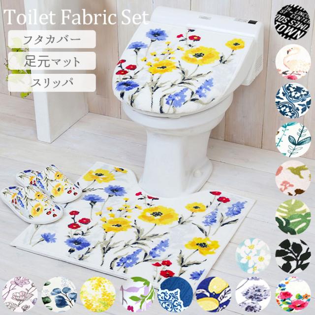 トイレマットセット 3点セット 通販 おしゃれ トイレカバーセット 花柄 フラワー フタカバー 蓋カバー スリッパ 洗える 洗濯可 丸洗い トイレタリー かわいい シンプル モダン トイレファブリック トイレ セット 引っ越し 新生活 ギフト プレゼント