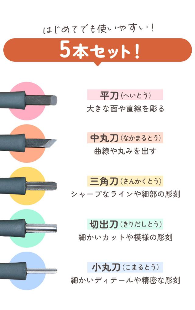 彫刻刀小学生 5本セット オシャレ 子ども こども キッズ 文具 文房具 シンプル