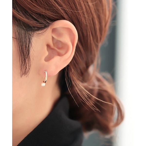 ノワール ド プーペ(NOIR DE POUPEE)/K10 1粒パール フープピアス