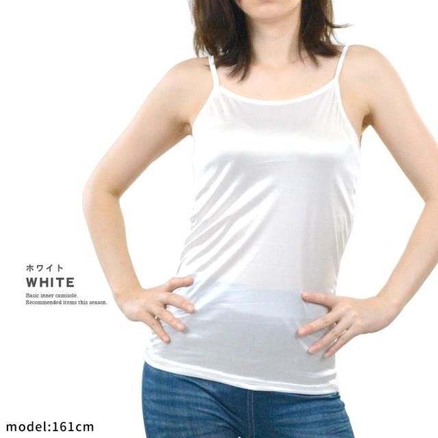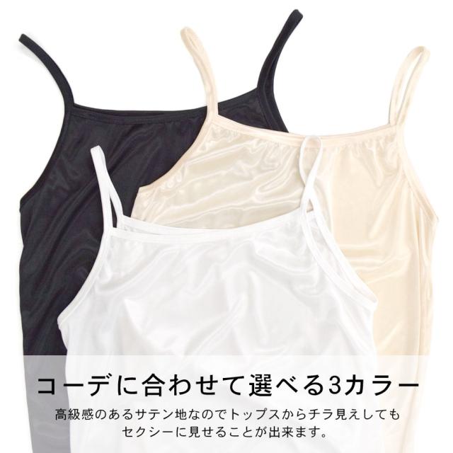 【キャミソール サテン インナー 黒 白 光沢 薄手 重ね着 高級感 上品 下着 セクシー レディース ランジェリー シンプル 無地】