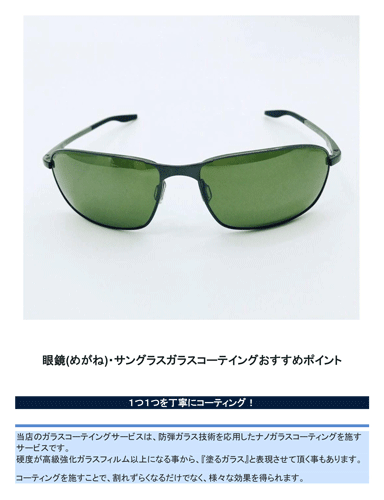 メガネ・サングラス ガラスコーティング【当店でメガネ・サングラスをご購入の方のオプション商品になります。キャンセル不可。】