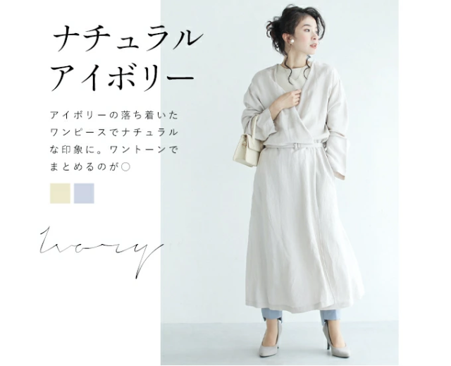 女性らしく着こなしたい時は、ベージュやグレーを持ってくると優しい印象になります。