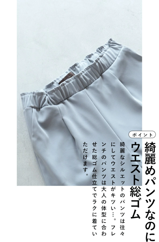 【閉店SALE】 痩せずに 美脚!万能テーパード パンツ w67885-gy グレー cawaii ウエストゴム レディース センタープレス タック ストレッチ レギパン 美脚 ハイウエスト 大きいサイズ シンプル 無地 オフィス 体型カバー 50代 60代 30代 40代 母の日