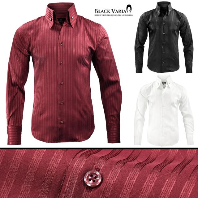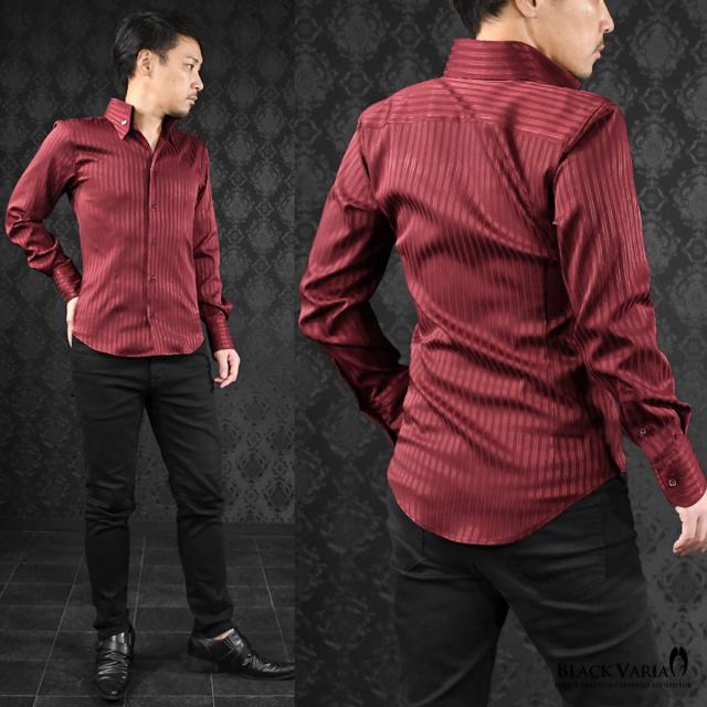サテンシャツ ドレスシャツ スキッパー ストライプ メンズ ジャガード ボタンダウン スリム 日本製 無地 mens(ワインレッド赤) 191852