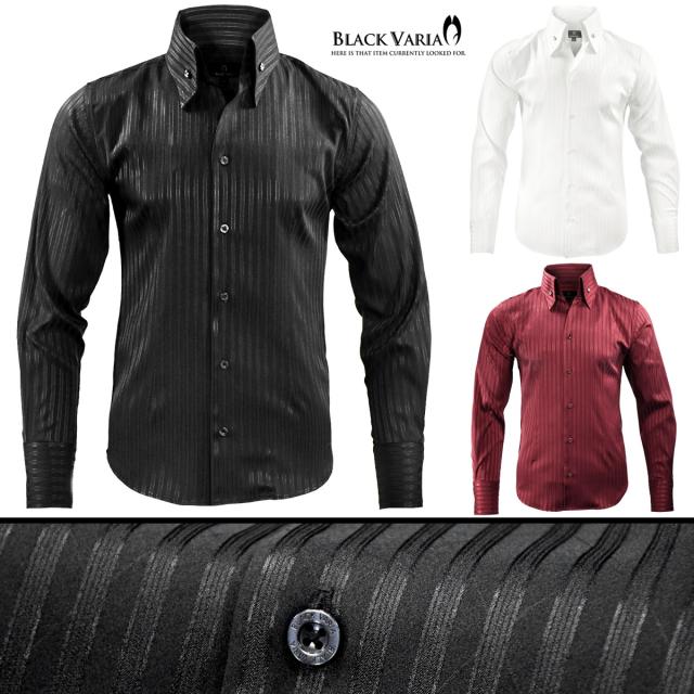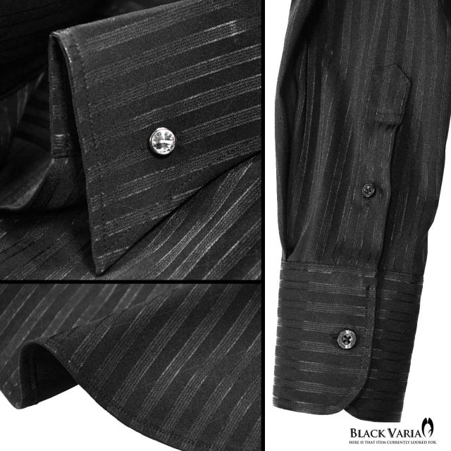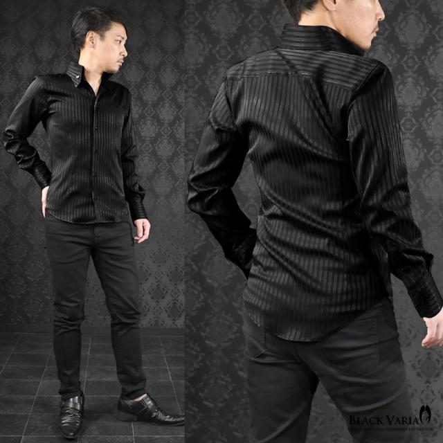 サテンシャツ ドレスシャツ スキッパー ストライプ メンズ ジャガード ボタンダウン スリム 日本製 無地 mens(ブラック黒) 191852